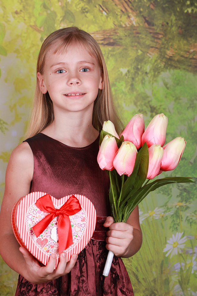 Атрибуты: цветы, подарочная коробка "сердечко".