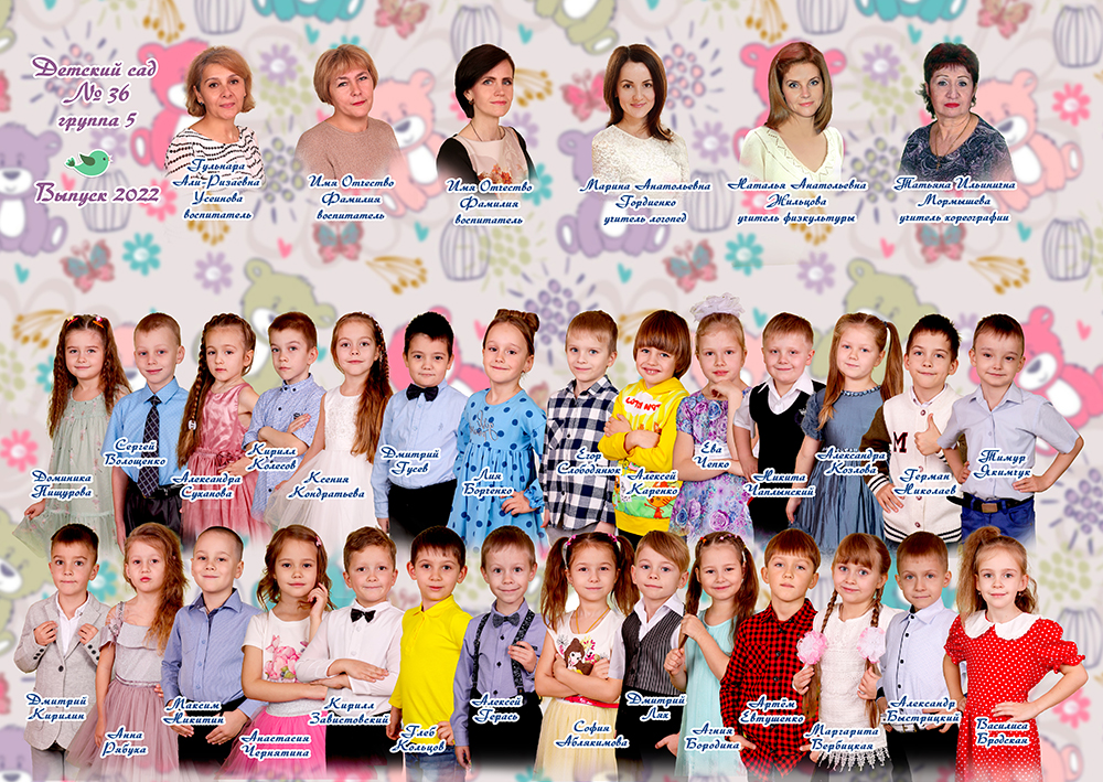 Общая фотография группы. Отдельно фотографируется каждый выпускник, а после собирается совместное фото.