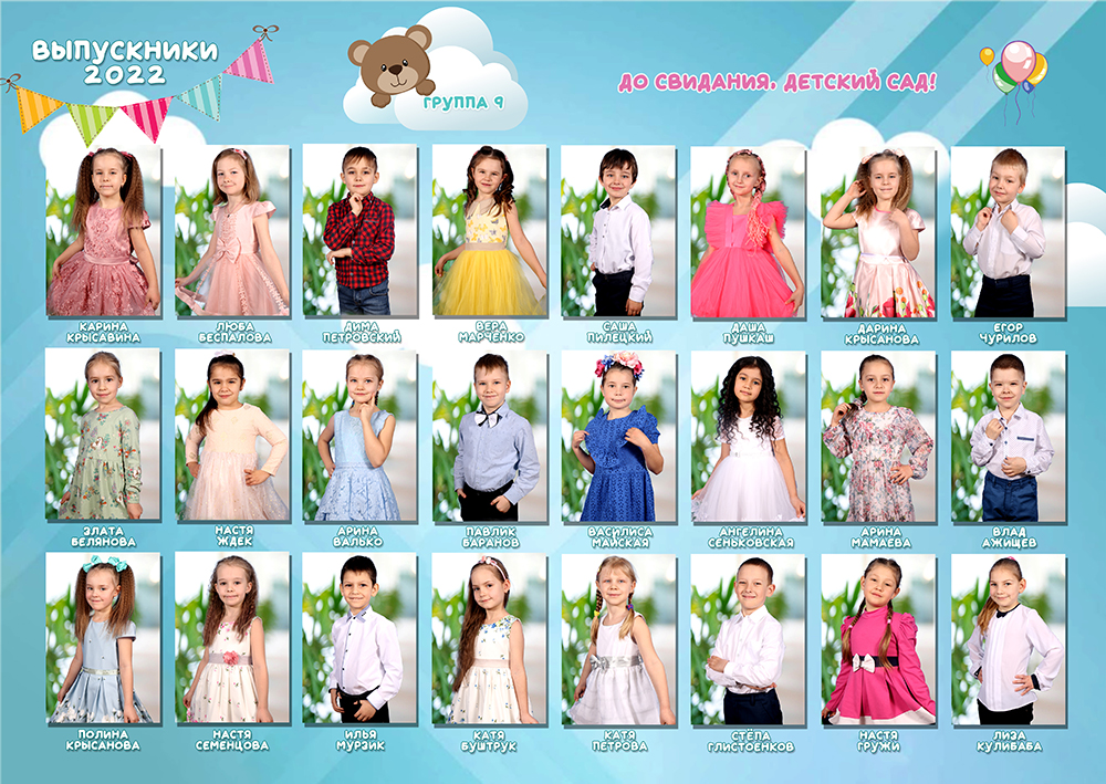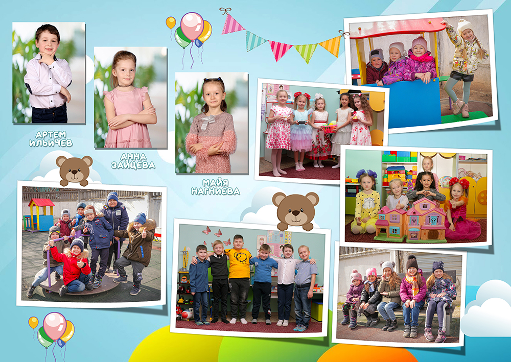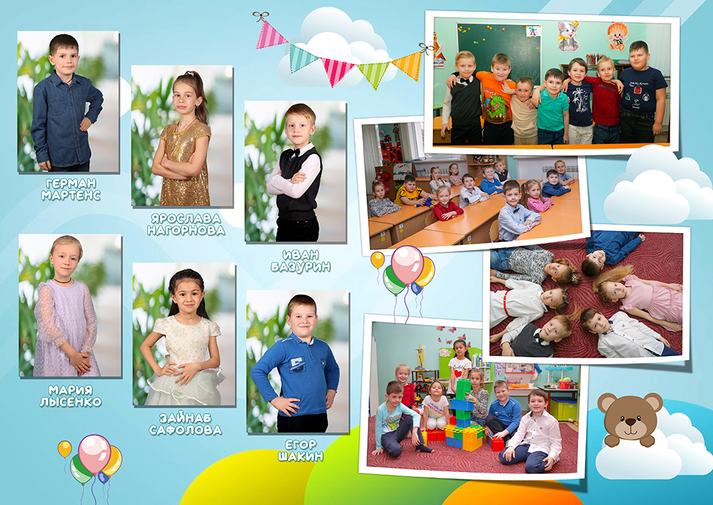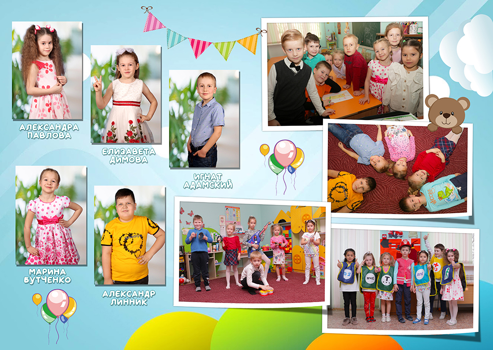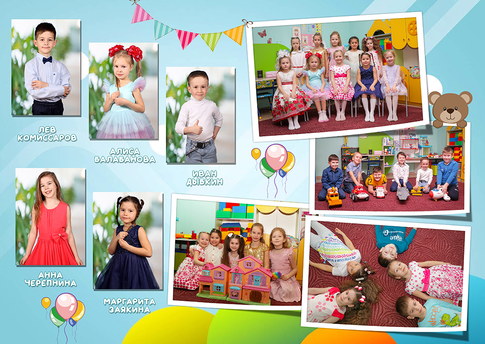 Также можем предложить вариант без портрета на обложке и более крупных портретов детей на разных разворотах альбома: