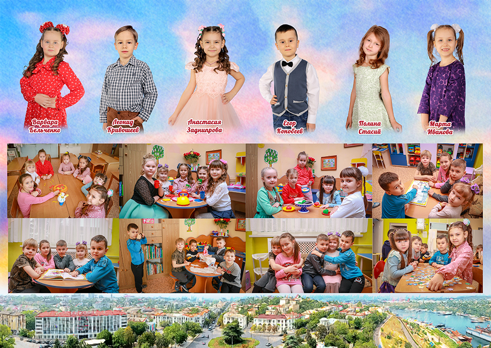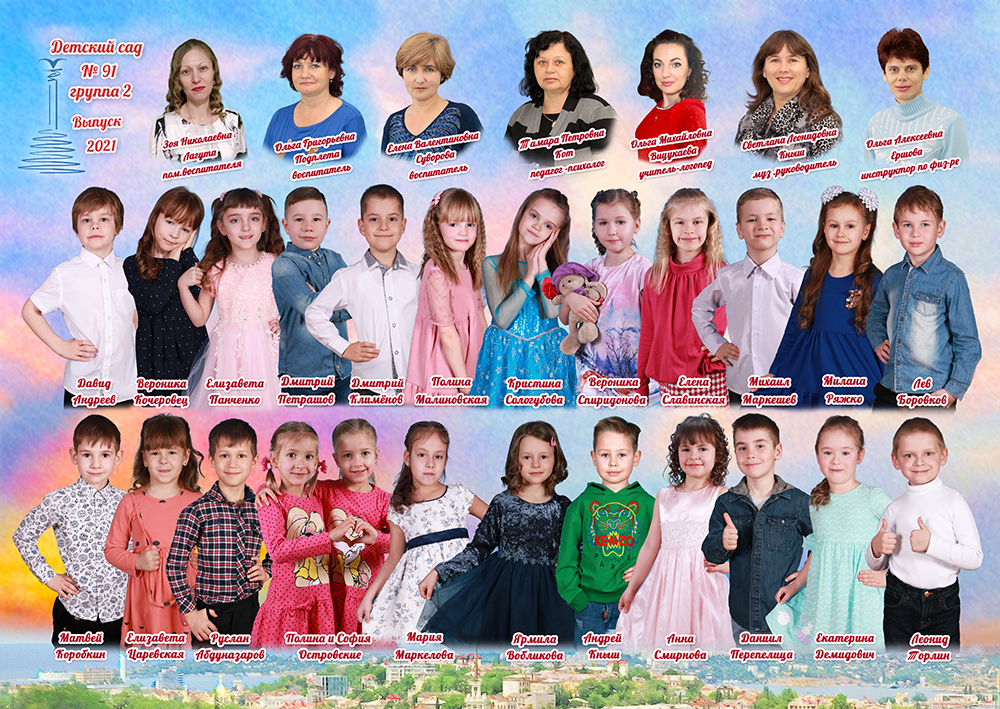 Общая фотография группы. Отдельно фотографируется каждый выпускник, а после собирается совместное фото.