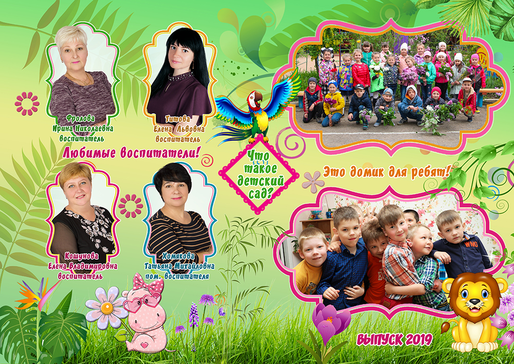 Портреты воспитателей и групповые фотографии находятся на одном развороте.