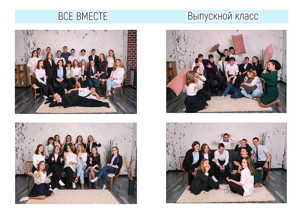 Групповые фотографии. Съемка в студии оплачивается дополнительно.